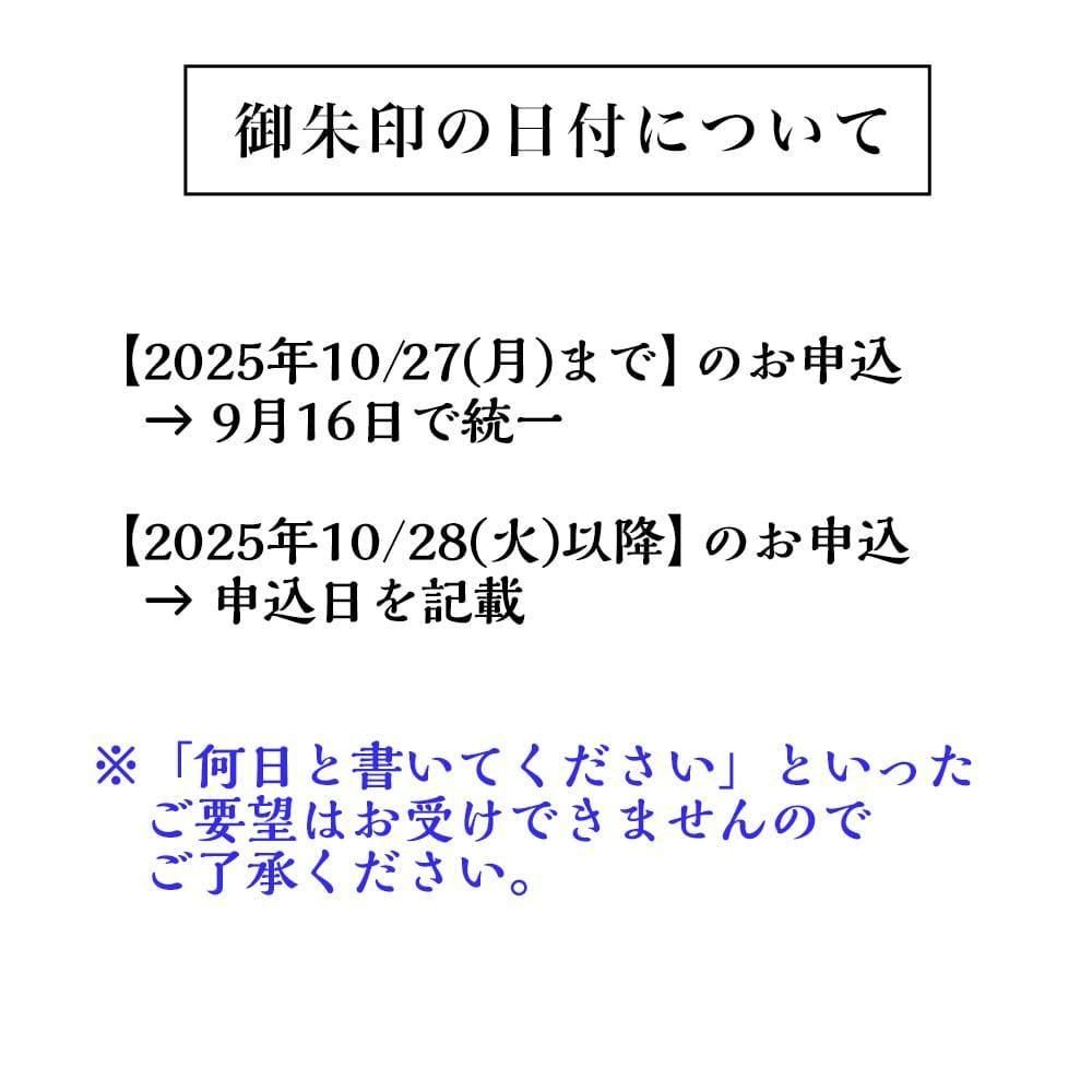 御朱印は商品ではなく「参拝の証」ですので、本来であれば直接お参りいただくことが本義ですが、諸事情により参拝が難しい方のご要望を考慮し、一定枚数に限り郵送対応を受け付けております。