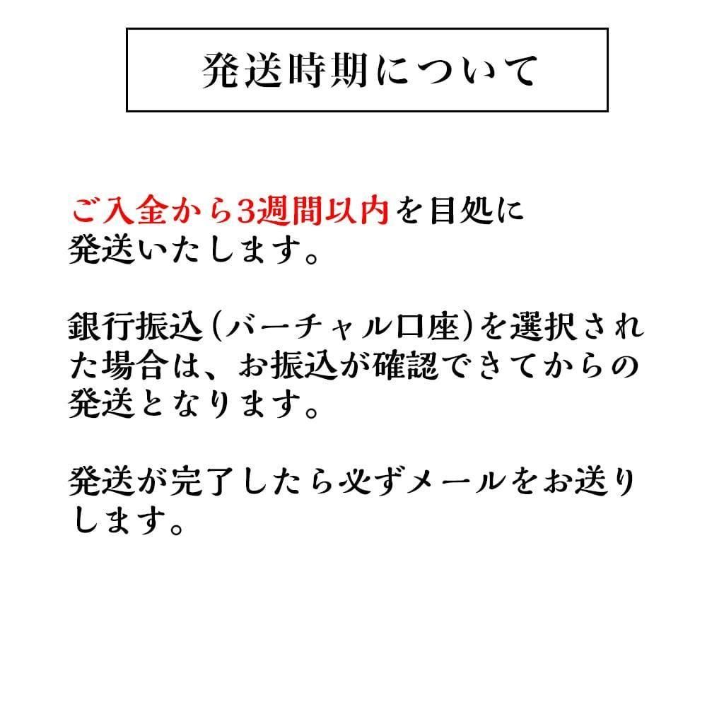 ・入金から3週間以内を目処に発送させていただいております。発送までしばらくお待ち頂けますと幸いです。